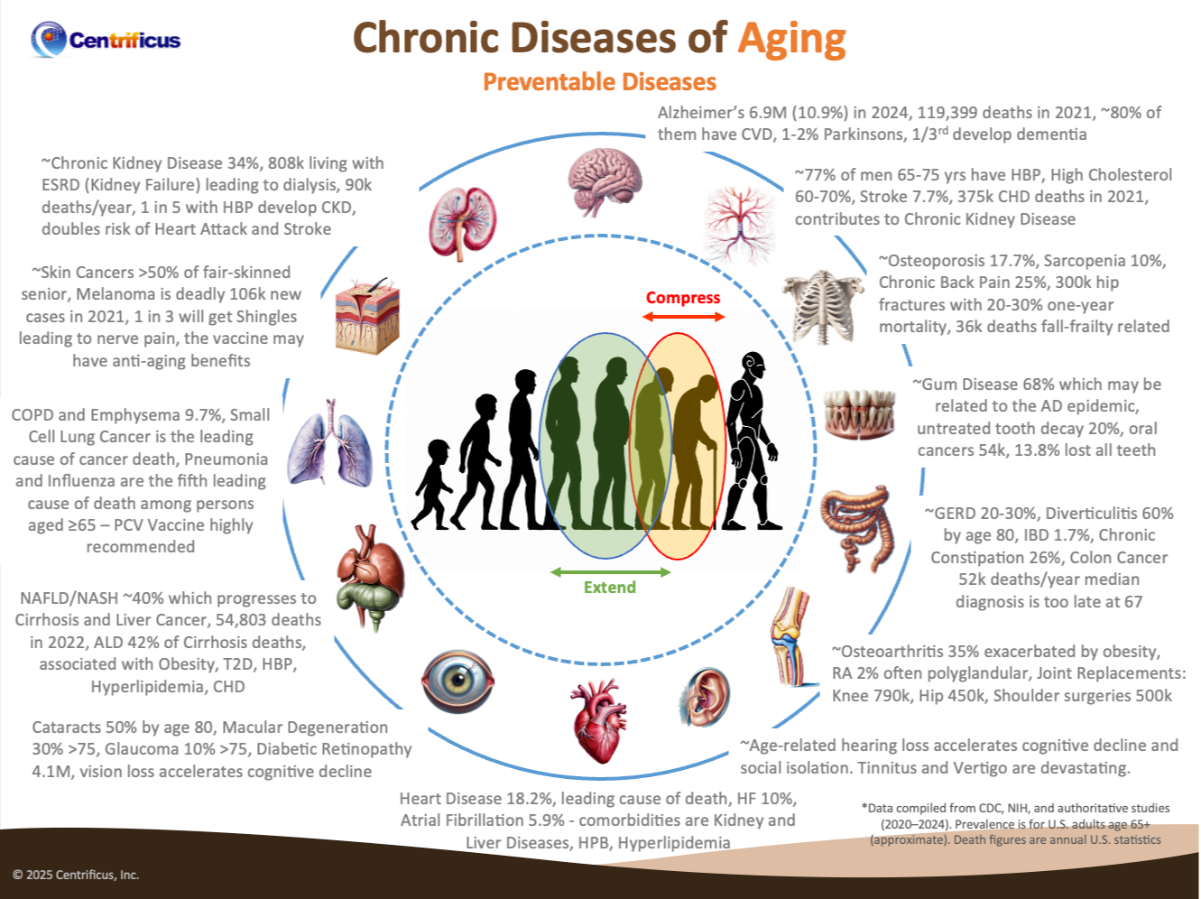 - Leveraging the most advanced laboratory testing and imaging to identify nascent and emerging chronic diseases and when it is possible to reverse, prevent, delay and mitigate them; and to prevent untimely rapid decline, prolonged disability and early death.