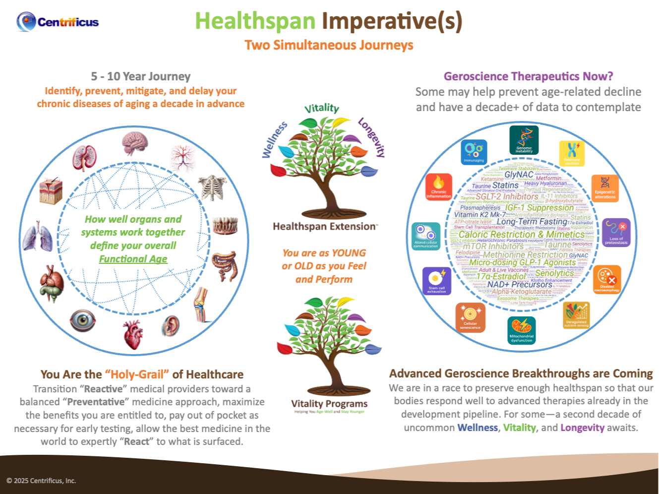 Disclaimer:Â This coaching program provides education, lifestyle guidance, advocacy, and research curation for informational purposes only. I am not a licensed medical provider and do not diagnose, treat, or prescribe medications, treatments, or therapies. All medical decisions, testing, and treatments must be discussed with and directed by your licensed healthcare professionals. Participation is at your own discretion and risk and all decisions you choose to make are made by you in consultation with your medical team and family. By applying, you acknowledge and accept that Centrificus, Inc. and its representatives, (and William and Lennie Theurer as individuals) are not responsible or accountable for any negative health outcomes as you age. You and entities you control agree to indemnify, hold harmless and defend Centrificus, Inc, its officers and representatives, and William and Lennie Theurer as individuals, against any legal actions related to your participation in the program. You further agree to arbitration in Denver Colorado for resolution of any disputes arising from your participation in coaching services. Additional contractual agreements may be required.