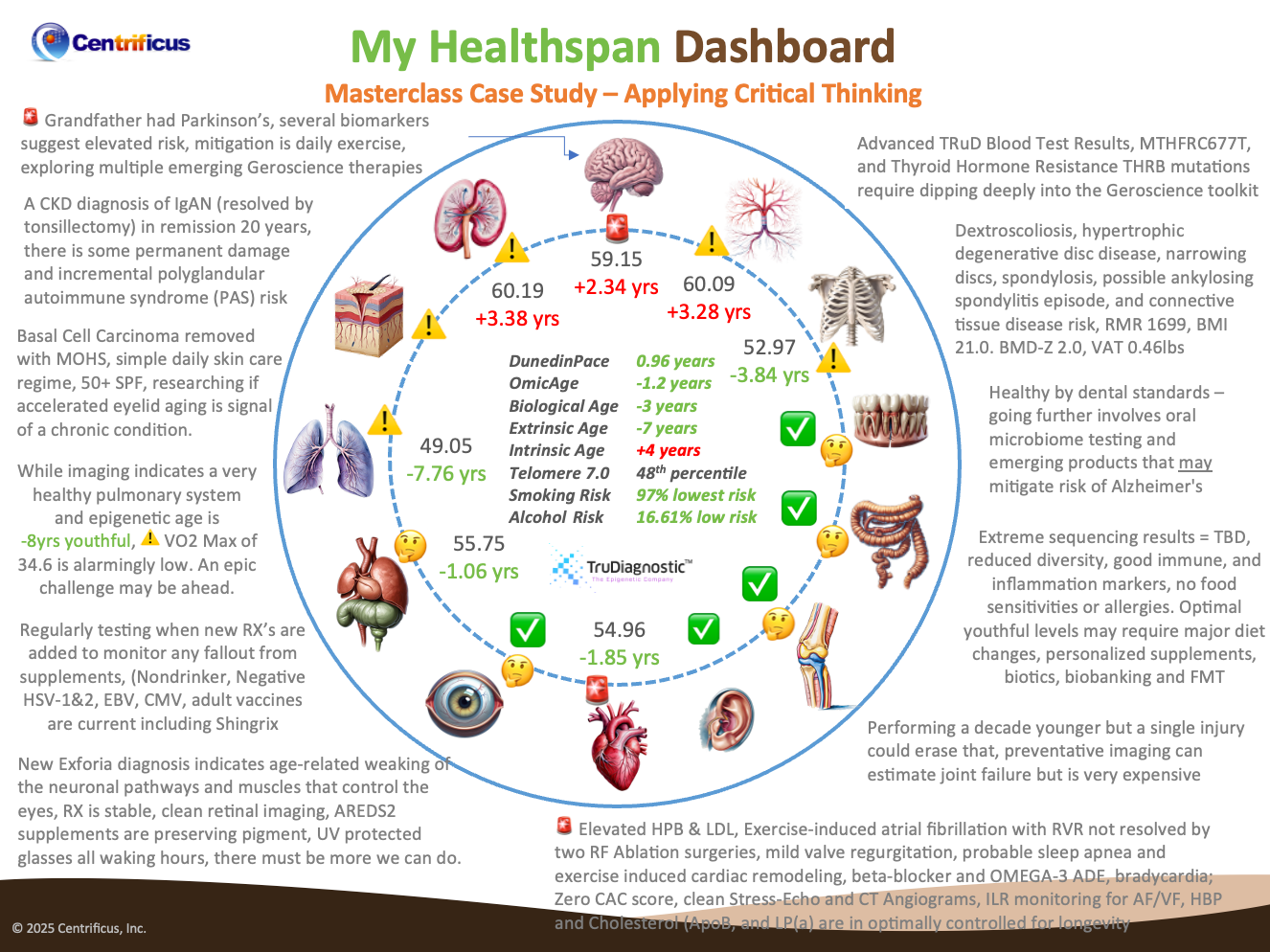 - Creating your personal Healthspan Dashboard by body system to guide strategy and prioritize immediate next steps.
